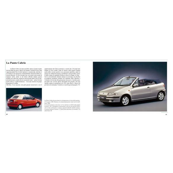 Born in a context of strong optimism, but then forced to face the economic situation of the 90s, the Punto was one of the most successful models of the Fiat Group. Available in a vast range of versions, it was a sober and reliable family car, an attractive sports car in the GT version with Turbo engine and a pleasant cabriolet, built by Bertone. It was the right car to meet the needs of a very large and varied clientele.