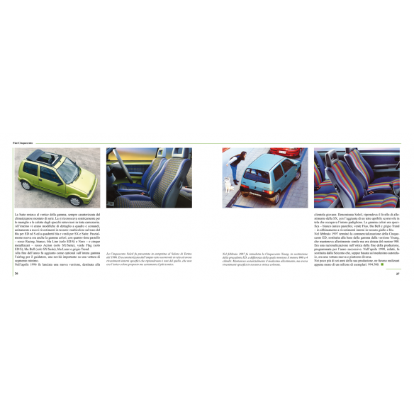 Con alle spalle un'eredità molto impegnativa, la Cinquecento rappresentava il nuovo modo, moderno e razionale, di interpretare la vettura da città secondo la Fiat. Caratterizzata da un design pulito e minimalista, era una vettura estremamente pratica, che si concesse però anche qualche velleità sportiva con la versione Sporting, qualche raffi natezza con le serie speciali e persino un'innovativa variante elettrica.